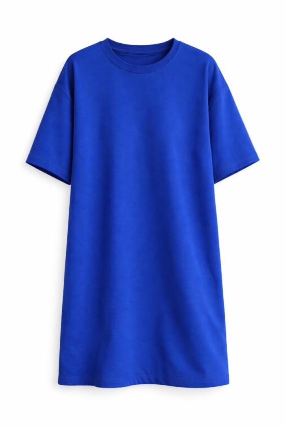 Krótka sukienka o kroju t-shirta z kieszeniami uszyta z dzianiny w kolorze chabrowym